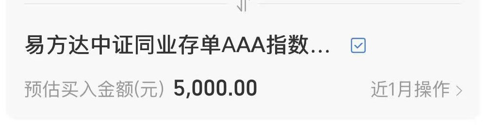 同业存单:$易方达中证同业存单AAA指数7天持有$+5000元,年底收官了,今年