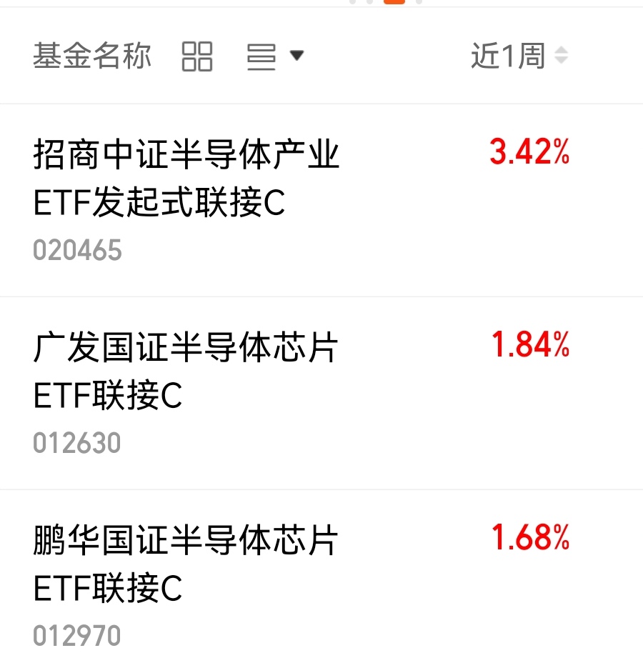 $招商中证半导体产业ETF发起式联接C(OTCFUND|020465)$近一周涨幅3.42%