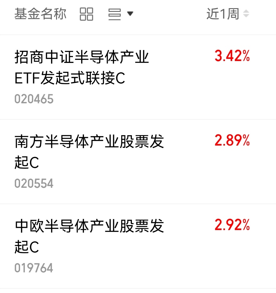 $招商中证半导体产业ETF发起式联接C(OTCFUND|020465)$近一周涨幅3.42%