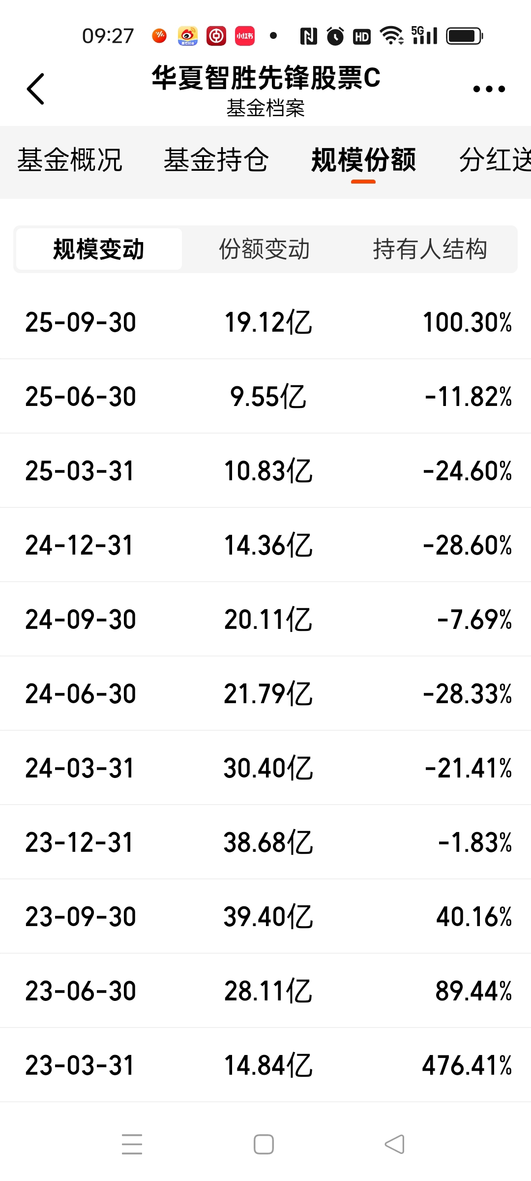 本基金在2021年12月15日发行,至今也有快4年了,现在的投资规模是19.12亿元。要知道这4年中,前面2年是熊市弥漫,后面2年属于慢牛走势。那么对所有的基金来说,熊市和牛市的氛围是不一样的,业绩也是有区别的,投资的规模份额也是有多和少的,投资者的情绪也是有区别很大的。