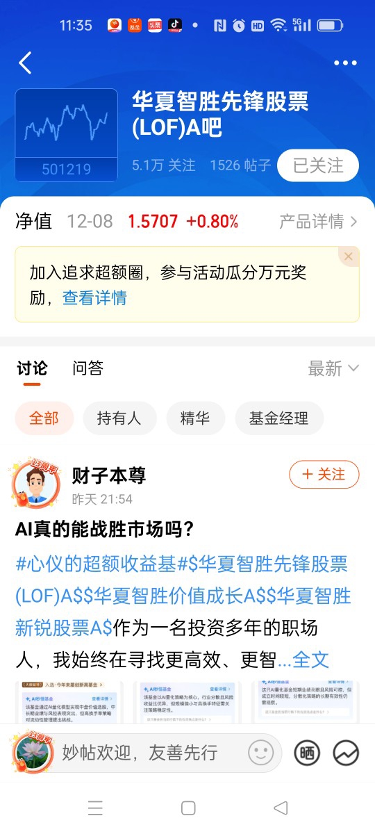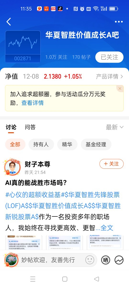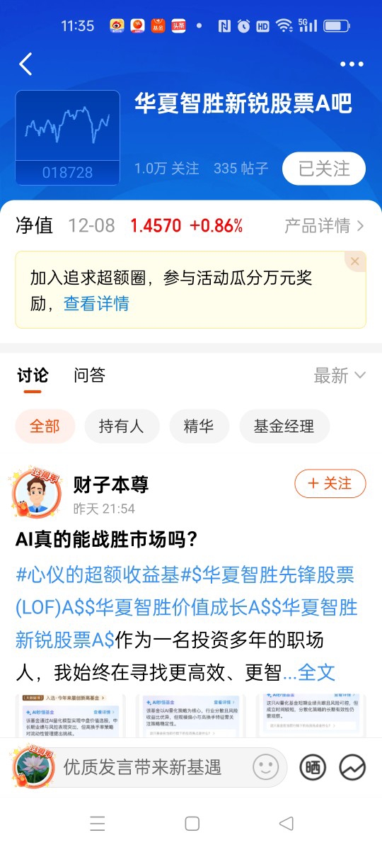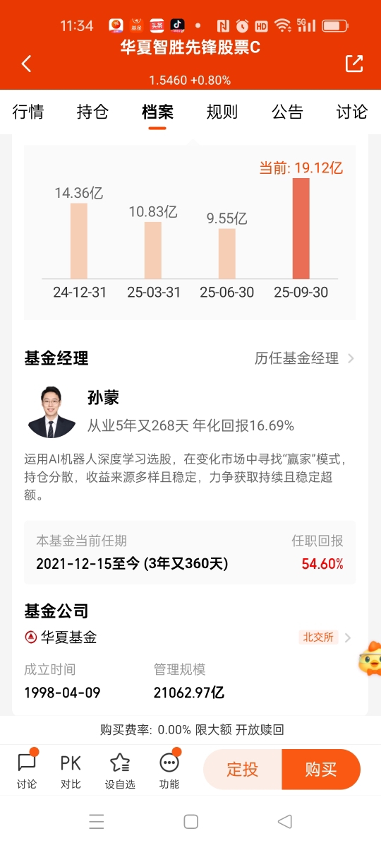 我本人是在2023年10月份上车投资这个$华夏智胜先锋股票C$,代码:014198,基金经理就是华夏的老将孙蒙经理,我也是第一次感受到了这个基金经理的投资能耐。