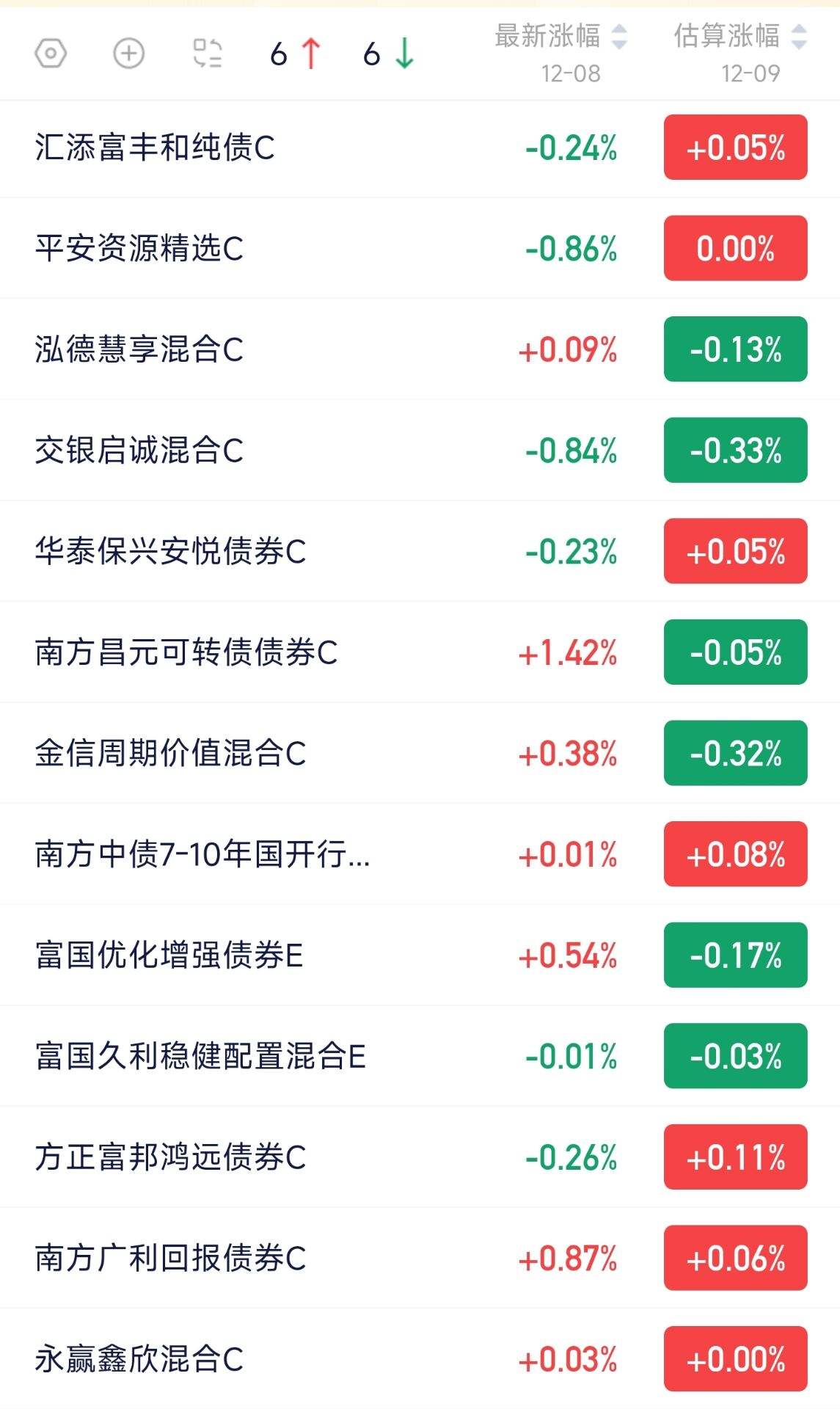 部分基金估值播报仅供参考,估值计算会有误差较大情况,以晚上收益更新为准: