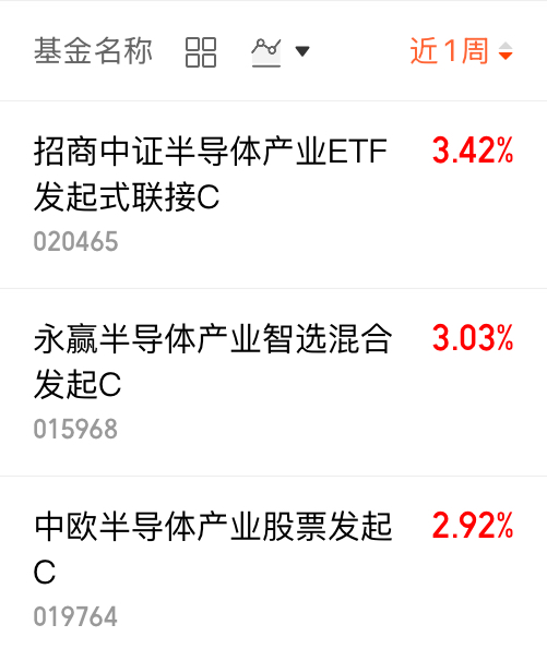 今年股市慢牛来袭,大科技是市场的主线行情,其中半导体方向具有高成长性,近一周来整体表现不错,其中$招商中证半导体产业ETF发起式联接C(OTCFUND|020465)$周度涨幅3.42%,后市可期啦!$中欧化工产业混合发起C(OTCFUND|024641)$#商业航天利好频出!如何把握投资机会?#