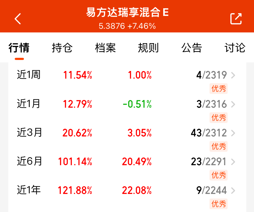 今天大盘呈现震荡格局,不过昨天的行情有目共睹的,尤其是近期CPO领涨科技板块开启反弹,其中易方达瑞享昨天收涨7.46%,近一年涨幅121.88%,整体表现亮眼!$招商中证电池主题ETF联接C(OTCFUND|016020)$#商业航天利好频出!如何把握投资机会?#