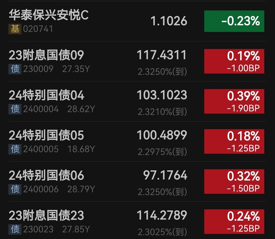 $华泰保兴安悦债券C$ 今天超长债迎来小幅反弹,就是力度不行,目前也只是把昨天的跌幅收了回来!