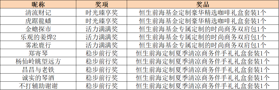 号外!!由于大家参与激情高涨,小编的领导深受感动,决定在不久的将来(快的话可能就在未来一两周,小编尽量争取!!!)继续给大家谋更多福利!别忘了搜“恒生前海基金财富号”,加“关注”,更多福利活动等你来!本次没有抽中的小伙伴千万不要气馁噢,您的运气可能在下一次活动中出现!