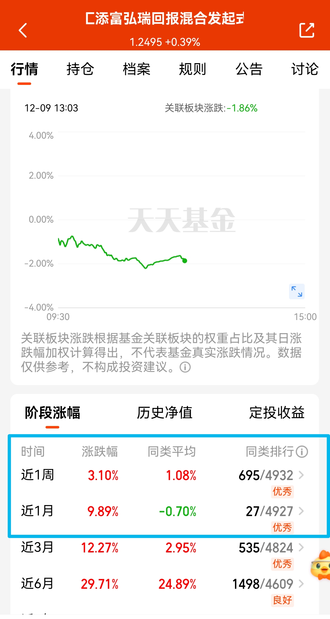 得铜者得天下,铜作为“新时代的石油”,是数据中心、新能源车的核心材料,需求增速远超供给,很多配置铜基的收益都很可观。$汇添富弘瑞回报混合发起式C(OTCFUND|022321)$近1周涨幅3.1%,近1月涨幅9.89%,表现领先同类(同类排行27/4927)。