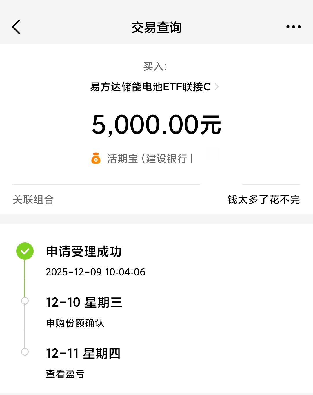 今天我直接买入5000元$易方达储能电池ETF联接C(OTCFUND|021034)$,积极布局反弹行情。