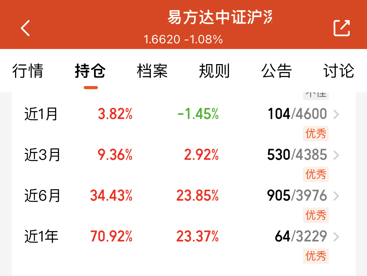 今日黄金赛道虽有波动,但长期趋势向好,我打算继续补点手里的$易方达中证沪深港黄金产业股票指数发起式C(OTCFUND|021363)$。这只基金表现很突出,近一年涨超70.92%,比同类平均收益高出23.37%,各阶段业绩都排在前列。而且黄金股的韧性比整个板块更强,上涨弹性空间更大,适配当前市场节奏,趁短期波动逢低定投,慢慢布局,长期看好这一赛道的收益潜力。