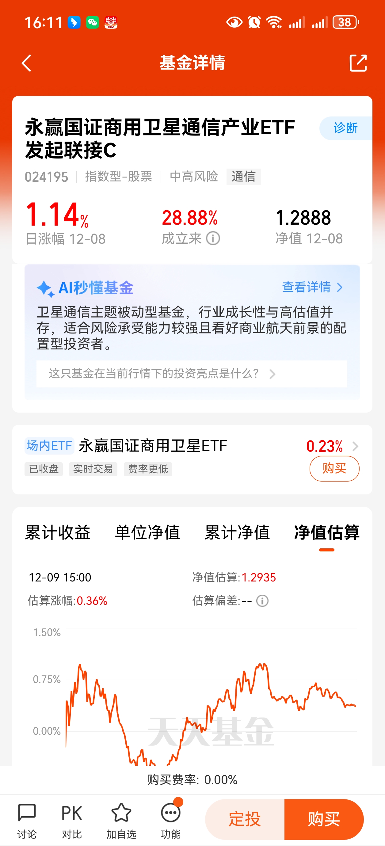 永赢国证商用卫星通信产业ETF发起联接C紧密跟踪国证商用卫星通信产业指数,是市场中布局卫星赛道最早、运作经验最丰富的ETF产品,昨天涨幅+1.14%,近一周涨幅+5.53%,近一个月涨幅+9.16%,近三个月涨幅+13.52%,成立没多久表现还不错呢,看好的小伙伴可以关注起来了!#商业航天利好频出!如何把握投资机会?#