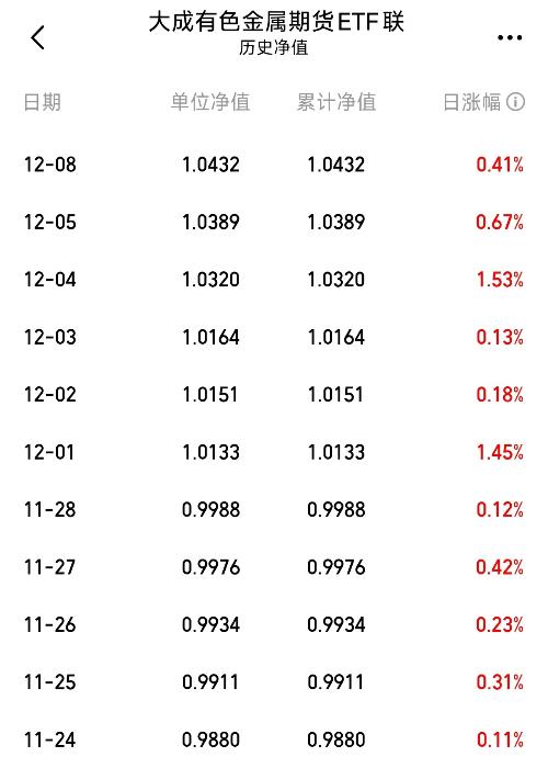 美联储降息在即,有色金属商品期货市场普遍看好。$大成有色金属期货ETF联接C$基金已经11连涨,目前市场关注度还不高,可以提前布局。