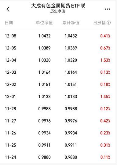 $大成有色金属期货ETF联接C$基金已经11连涨,受益于美联储降息的预期,带动有