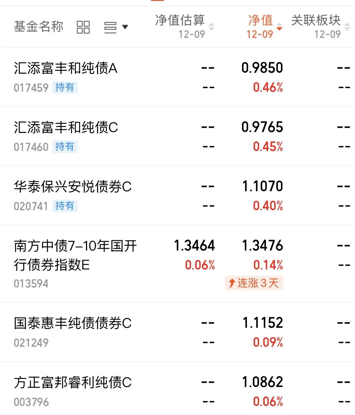 $南方中债7-10年国开行债券指数E(OTCFUND|013594)$收14个蛋,十债也是绿的独苗哈。