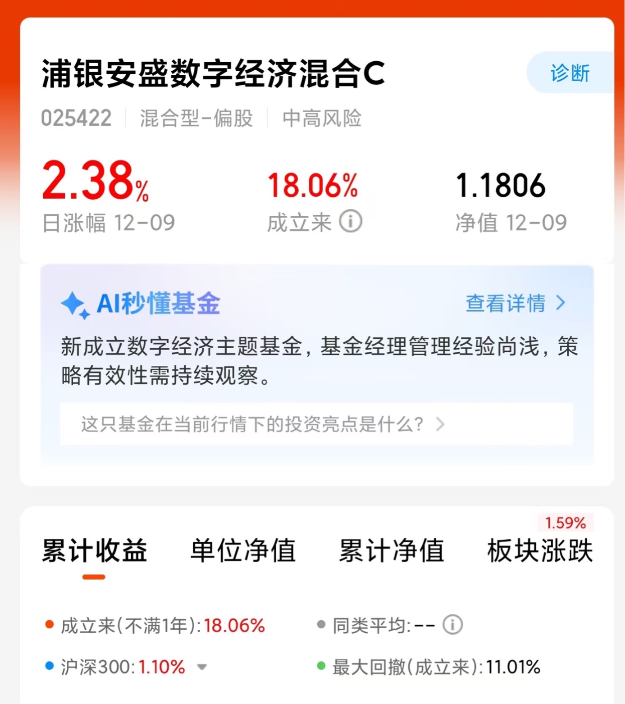 单日上涨2.38%的$浦银安盛数字经济混合C$不错哟,CPO里还是得看主动基,这