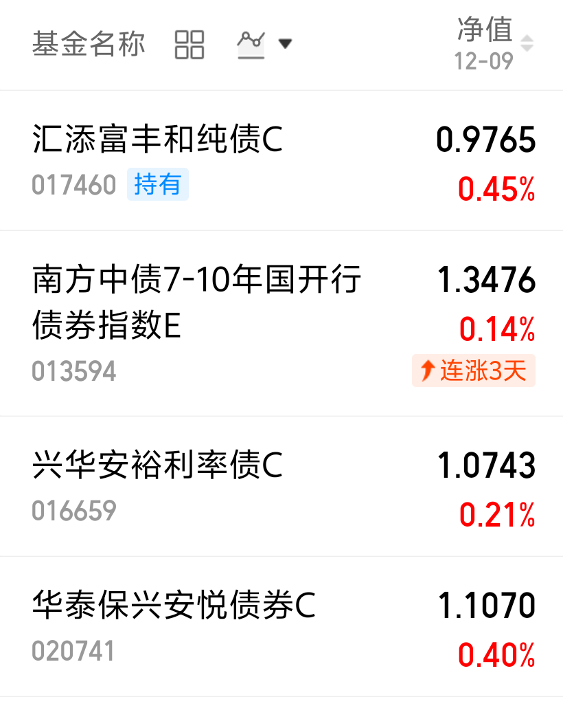 $南方中债7-10年国开行债券指数E(OTCFUND|013594)$今天收了14个蛋