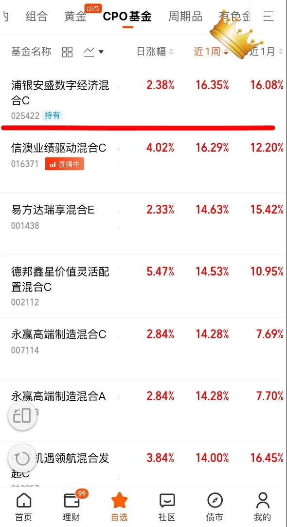 #12月基金投资策略# $浦银安盛数字经济C$今天涨了2.38%,浦银数字经济除了中间小跌1天,几乎创造11连涨记录,CPO竞品周涨幅数一数二,最近两天涨了12%,虽然今天PCB涨得也不错,抢了点CPO的风头,但是光通信爆发还是得看CPO,CPO里还是得看主动基,这种科技核心资产,弹性也足,拿住就对了