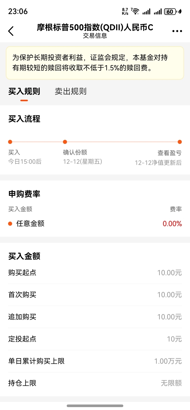 在目前观察这某根标普500指数qfll基金,在目前变成了每天可以选择买1万元了。
