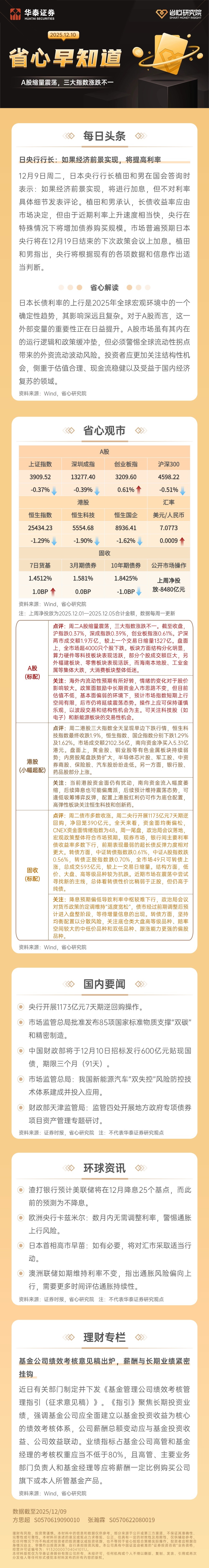 1210省心早知道——A股缩量震荡,三大指数涨跌不一