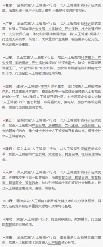 图:部分地方“十五五规划建议”中的“人工智能+”