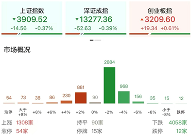 昨日市场震荡,三大指数涨跌不一,沪指、深成指震荡回落,创业板指冲高回落尾盘拉升。沪深两市成交额1.9万亿,较上一个交易日缩量1327亿。从板块来看,算力硬件全面走强,多只股票涨停或创历史新高;煤炭、有色等跌幅居前。截至收盘,沪指跌0.37%,深成指跌0.39%,创业板指涨0.61%,中证A500指数跌0.56%。