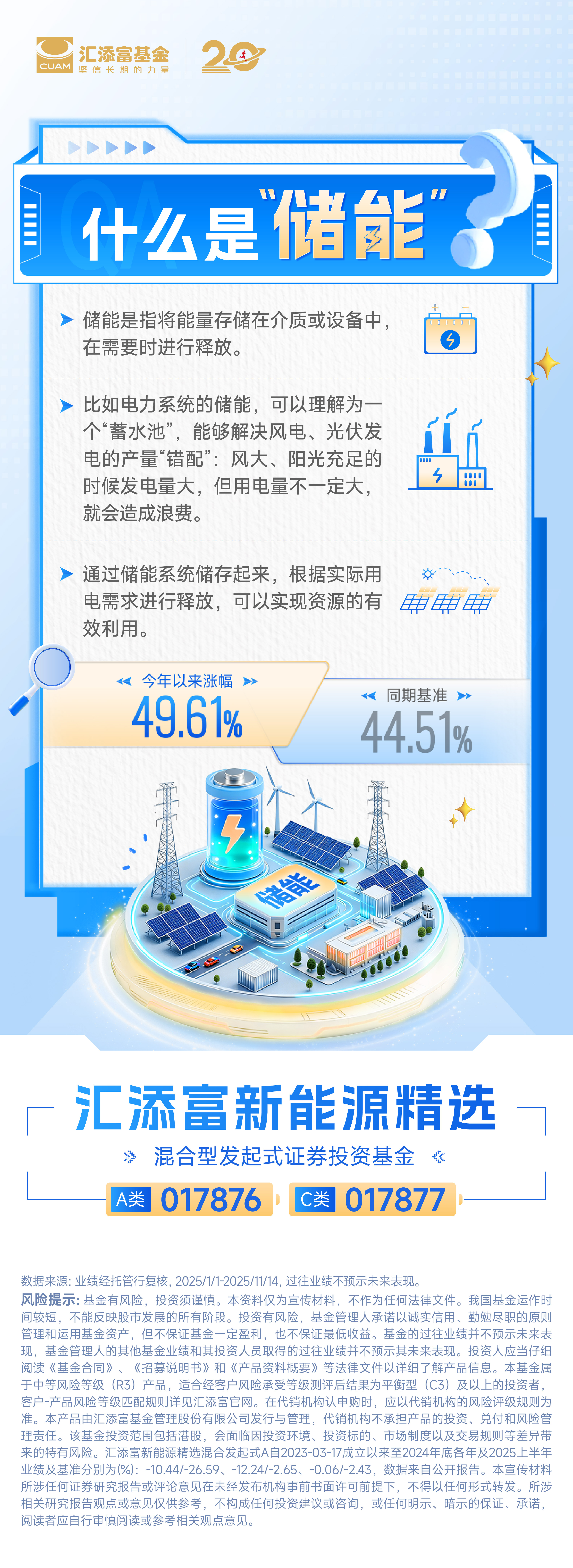 AI尽头是电力!汇添富新能源精选聚焦储能机会!