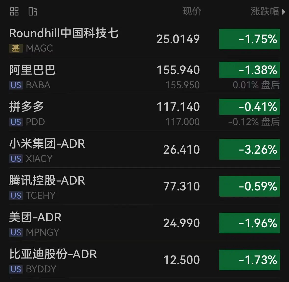 2、再看下昨晚美股的“中国资产”的表现。