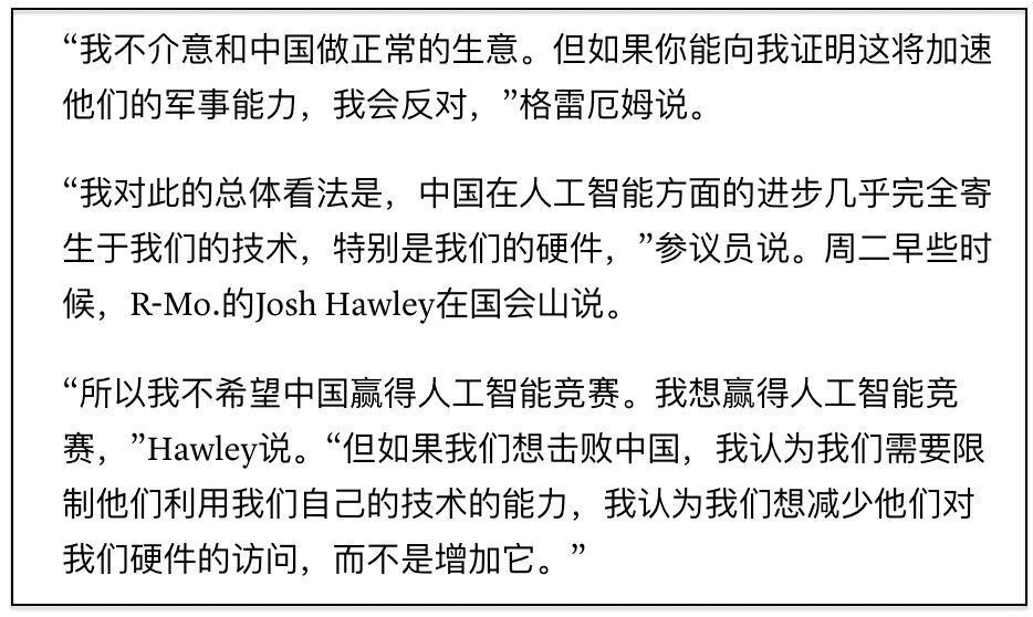 整体来看,老美的担心主要是几块:一是担忧在人工智能领域中国的加速追赶;二是担忧人工智能在军事领域的应用,产生更大的压力;三是认为英伟达应该放弃幻想,因为中国始终将致力于关键技术的突破,争取自行大规模生产芯片,最终成为英伟达的对手。