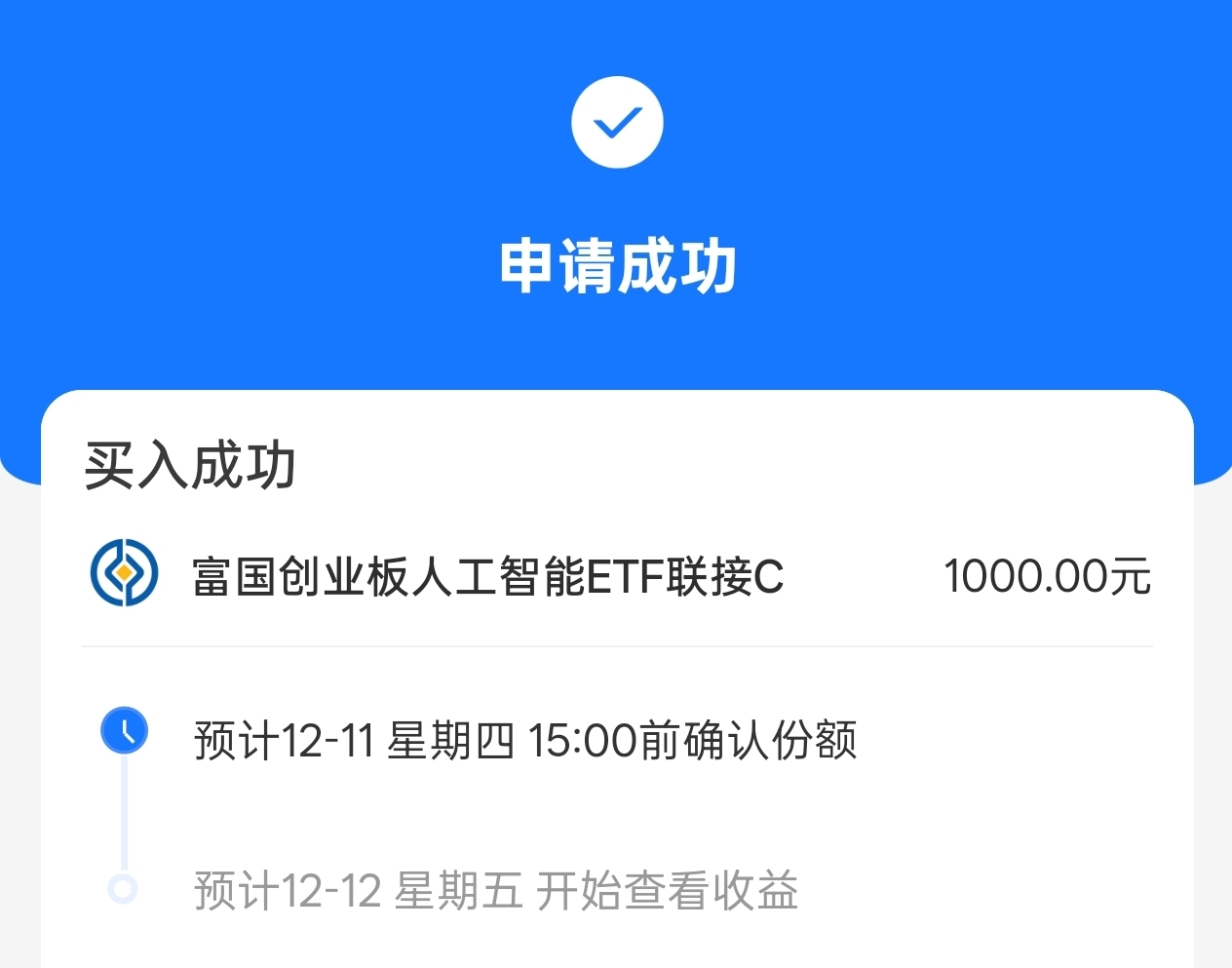 我接着加仓了$富国创业板人工智能ETF联接C$ ,这只近期表现挺亮眼。昨天它涨了2.64%,成立以来的涨幅更是达到了54.27%,数据相当可观。它紧紧跟踪创业板人工智能指数,走势挺好的,期待它后面的表现,加油!