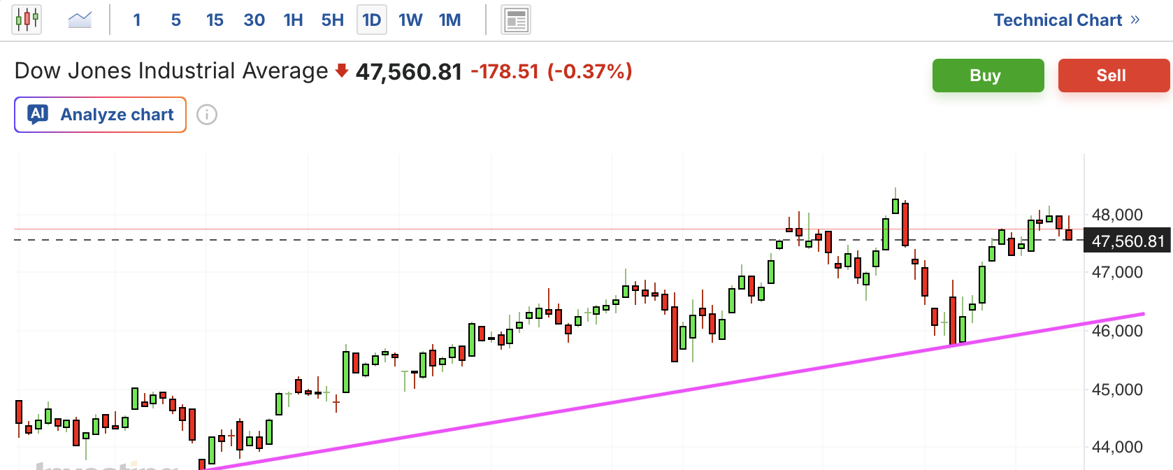 摩根大通(JPM)因警告 2026 年费用将高于预期,股价暴跌 4.7%,并一举跌破 50 日均线,触发明显抛售信号。波音(BA)尽管宣布 11 月交付 44 架飞机,符合市场预期,但股价仍下跌近 3%,此前一周曾因现金流展望向好而大涨。