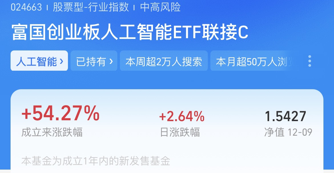 前两天指数上涨势头比较好,今天开盘走低,但是从大行情来看,我觉得市场的核心还是要看科技带动了。今天个人继续低吸$富国创业板人工智能ETF发起式联接C$ ,它主要跟踪创业板人工智能,一键布局科技龙头企业,连续上涨四天了,前天涨幅5.11%,短期内爆发力不错。今天估值回调,其实问题也不大,毕竟市场行情走弱,超3800家个股下跌,它跌幅较小,今天估值处于底部区域,筹码也便宜,先上车了