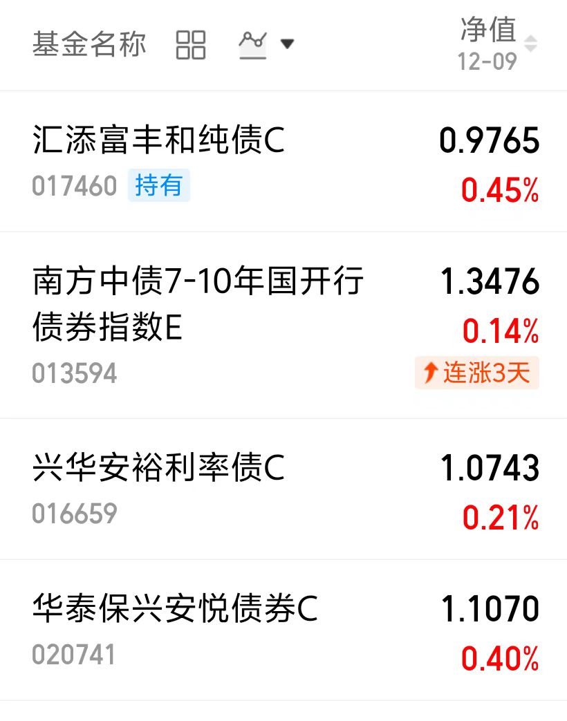 $南方中债7-10年国开行债券指数E(OTCFUND|013594)$昨天收了14个蛋