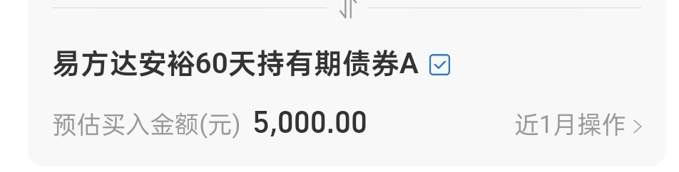$易方达安裕60天持有债券A$ 今天小师妹继续向这个稳健的方向发车5000元,易方达安裕主投中短债,前段时间债市回调安裕表现出了优秀的抗波动能力,通过数据开看安裕的收益能力强,收益稳定性强,历史盈利概率高,策略稳顶强等优点!持有这么久了体验感很不错,近一年收蛋216个,近一年最大回撤仅有9个蛋,而且13天就修复完成,虽然安裕是个60天的,但这个拿着很安心,波动小到忽略不计,小师妹觉得这里不但跑赢银行利息,还可以稳稳的超过货币,来这里也不用过多费心,今天继续发车一批。