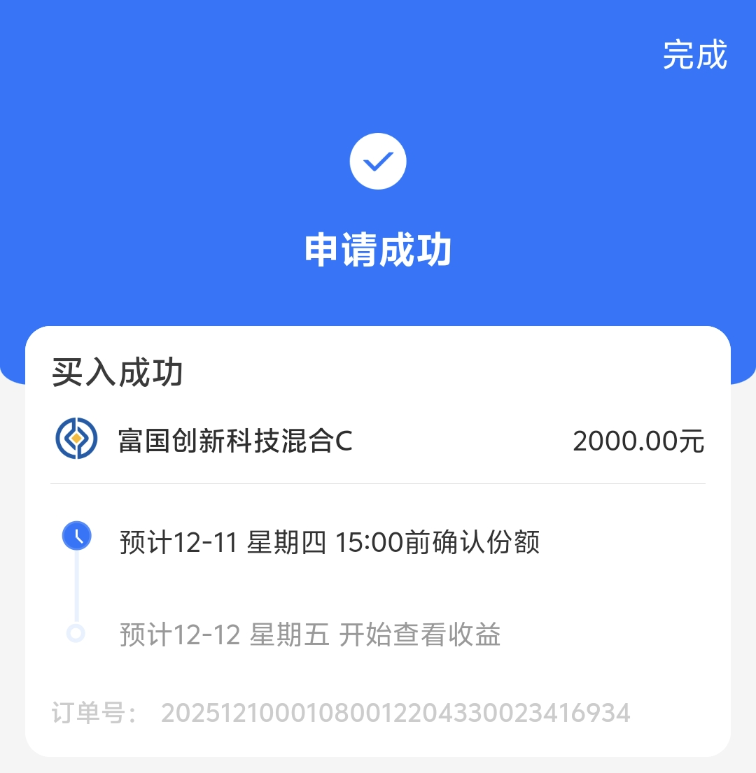 一直觉得科技赛道最值得长期跟进,它从不是空洞的概念,而是实实在在改变着各行各业的运作逻辑。今天买入2000元$富国创新科技混合C$ 它的持仓集中在技术创新活跃的领域,刚好契合我的判断。从传统制造的升级到现代服务的优化,很多行业环节都在科技驱动下迭代。这种产业升级的进程显然会持续很久,我打算用这笔小钱跟紧这个趋势,不追求短期收益,就想亲眼看看科技能把未来推向怎样的新高度。