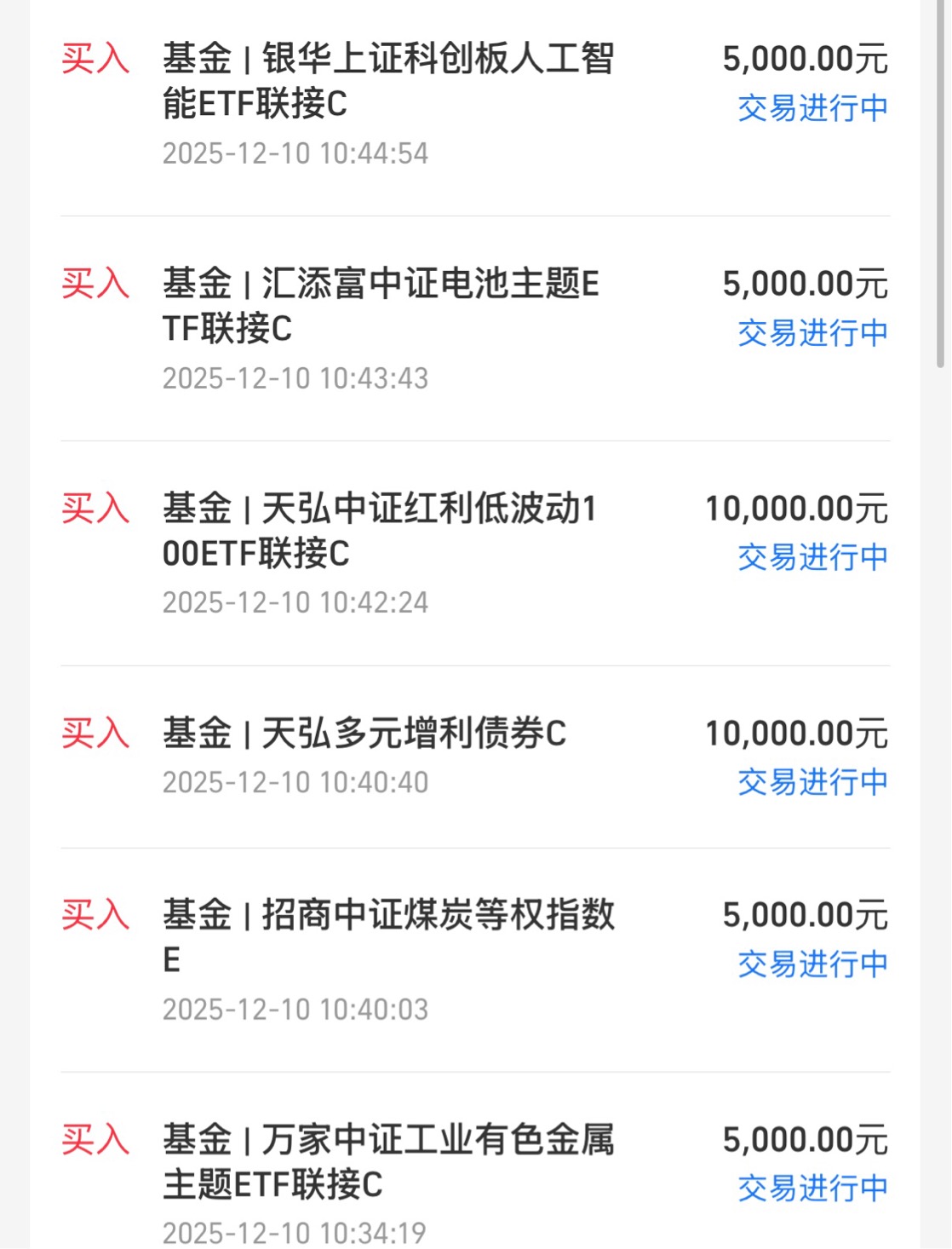 5.工业有色金属,上车5000, $万家中证工业有色金属主题ETF发起式联接C$ 昨天跌了3%,今天止跌起稳了,昨天我没有出手,今天我上车5000,从基金本身来看,专注的是工业有色金属,涵盖了铝、铜、银各股,同时还包括了稀土稀有金属等有色金属