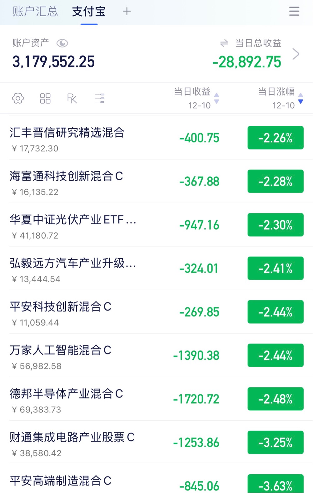 3. 红利低波动,上车10000,$天弘中证红利低波动100联接C$ 连续两天下跌超过1%了,个人逢低加仓一次,目前市场就是一个翘翘板,科技发力红利低波向下回调,科技冷静一下,又有机会向上突破了,策略上看,红利板块属于防御性资产。
