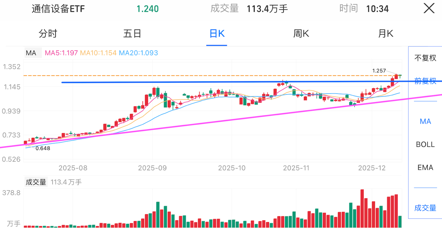 今日加仓1000。近期海外大模型需求激增、云厂商自研芯片加速落地,也在同步推高光模块、光芯片等通信端的需求预期,使通信设备重新成为最强势的进攻方向。从技术面看,通信设备指数近期突破长期震荡平台,短期均线呈多头排列,伴随放量,显示资金加速流入行业龙头,板块处在新一轮上攻的关键阶段。本基紧跟该指数,纯度高,能够直接受益于 AI 算力基础设施建设带来的长期需求增长。其跟踪指数历史表现位列同类前茅,最近更是同类居首。因此本人布局,做中长期配置。