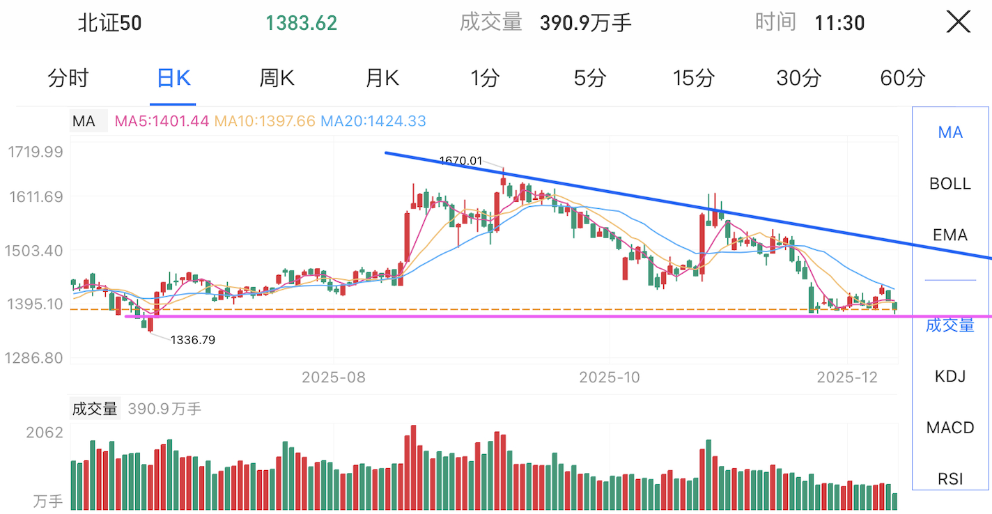 北证50:走势仍处于回调趋势中,继续受下降趋势线压制。作为新兴板块,若能在普跌中继续保持活跃度,有望率先走出底部,打开上行空间。目前在前低支撑位窄幅波动。由于高波动性,若未能突破压力,回调动能将持续,且流动性相对较弱,需谨慎控制风险。