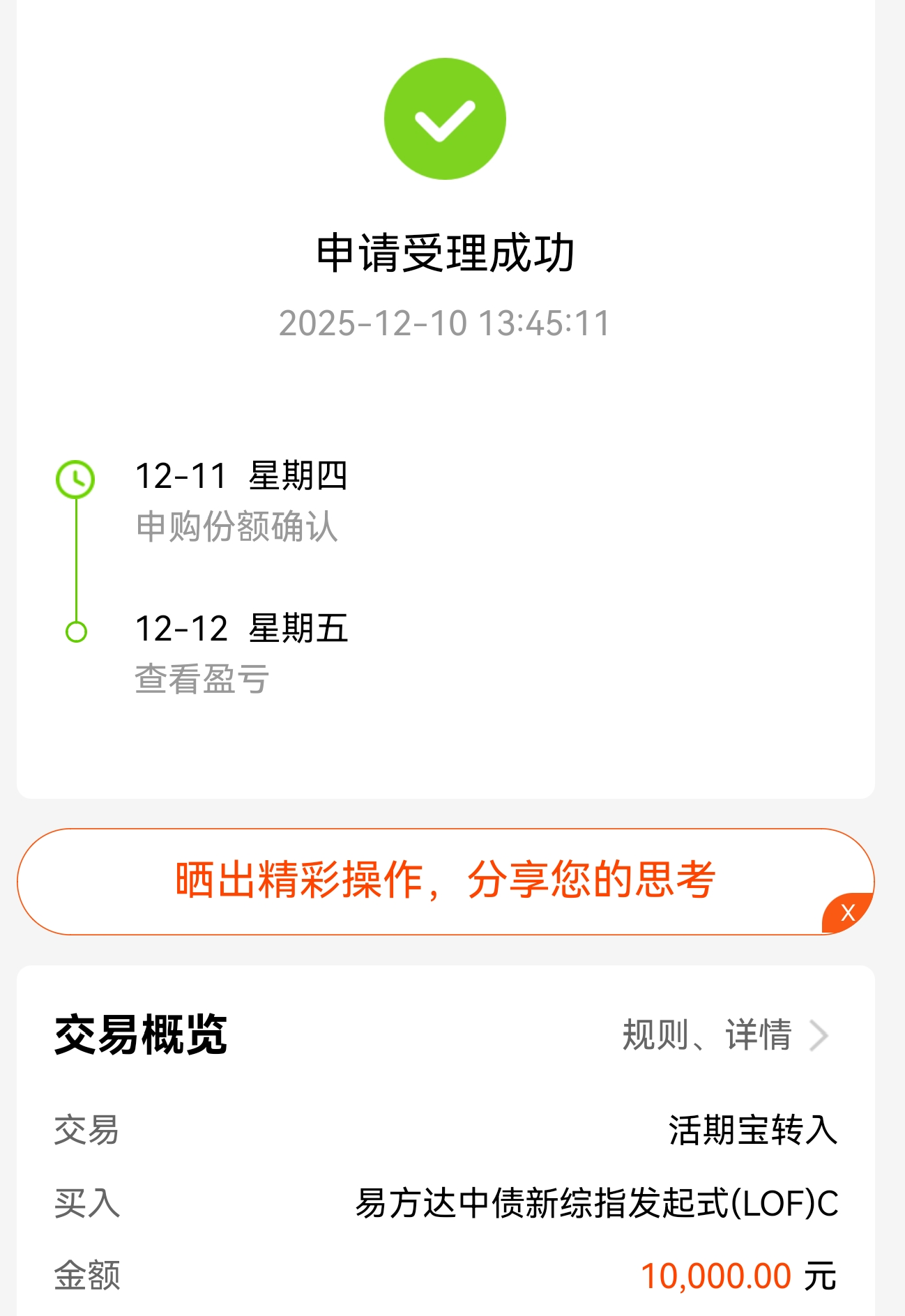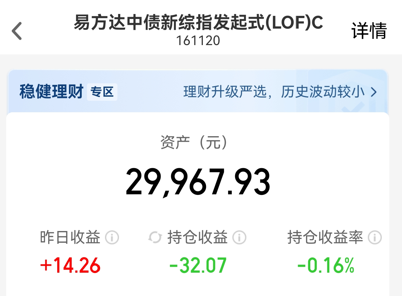 我加仓$易方达中债新综指发起式(LOF)C(OTCFUND|161120)$10000。