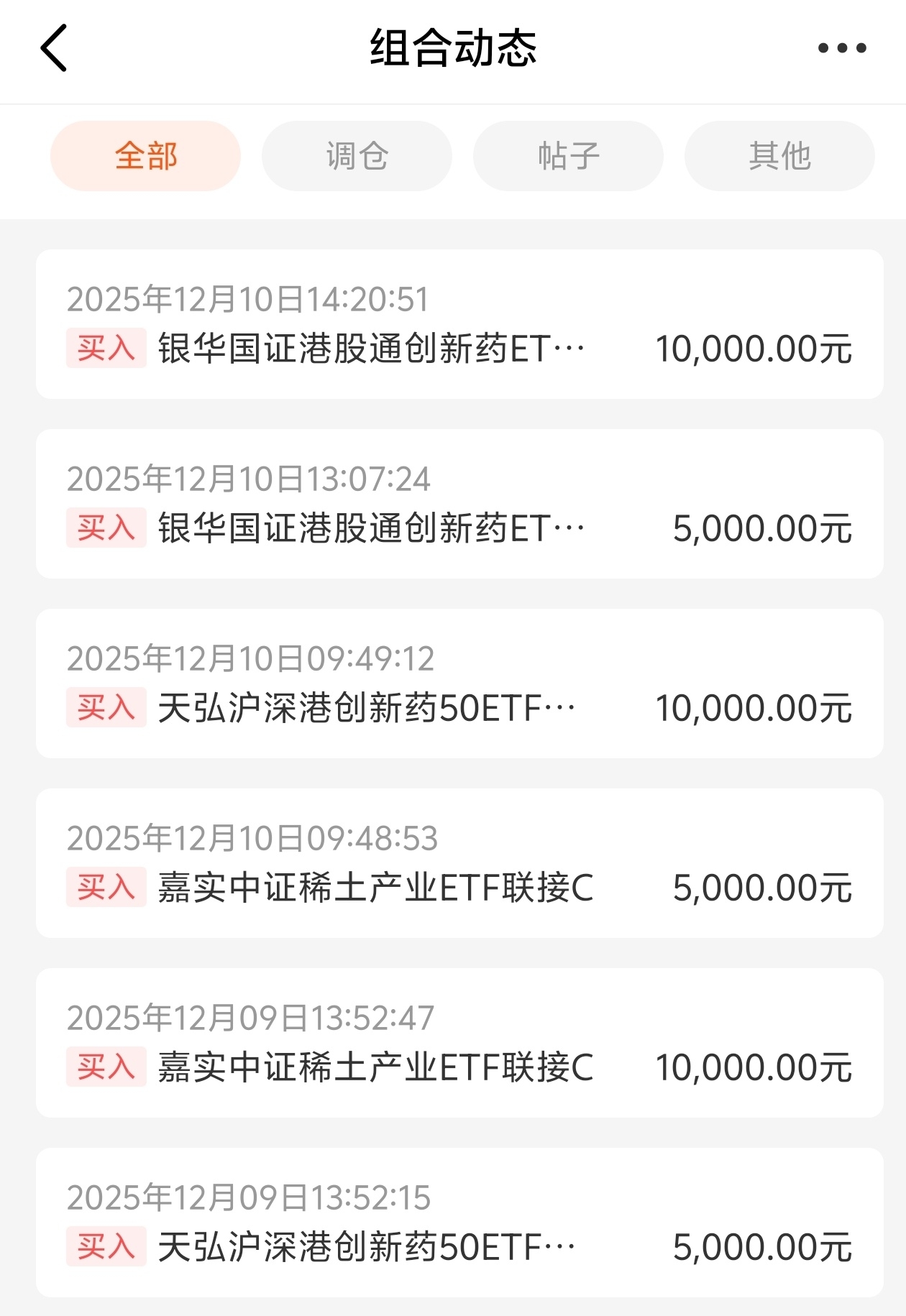 今天有加仓。另外买入银华创新药15000元,是因为有40元体验金减免,不用就浪费了。