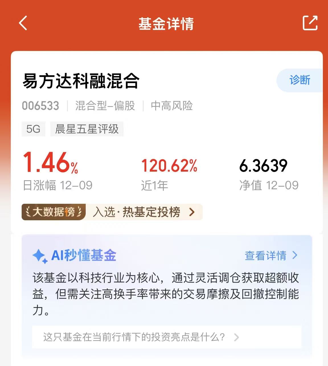 今天大盘低开高走,全市场超过2400只个股上涨,科技方向整体表现出色,全球经济弱复苏外加国内稳增长政策发力,科技自立自强与新能源转型双主线获政策持续加持,$易方达科融混合(OTCFUND|006533)$摒弃单一赛道押注,重仓科技成长龙头与新能源产业链核心标的,覆盖AI应用、光伏储能等高景气领域,回撤控制能力突出,今天也是稳住了。#摩尔线程市值超3300亿!估值逻辑是什么?# #商业航天利好频出!如何把握投资机会?# $银河创新成长混合A(OTCFUND|519674)$