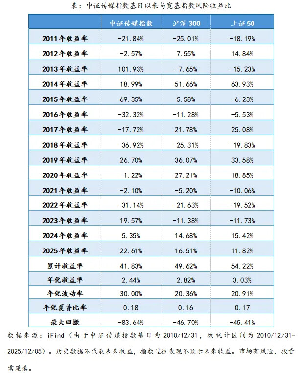 传媒指数表现可期:2025年中证传媒指数上涨22.61%,跑赢沪深300、上证指数。2025年前三季度传媒板块营收增长4.98%,归母净利润同比增40.23%,公募基金连续三季加仓。