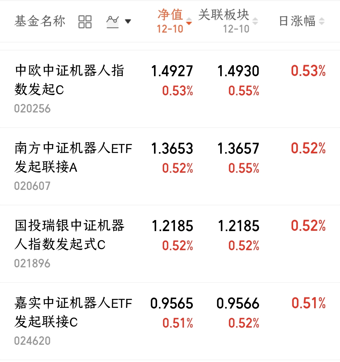 $中欧中证机器人指数发起C(OTCFUND|020256)$持仓机器人产业链,高成长行性,今日上涨0.53%
