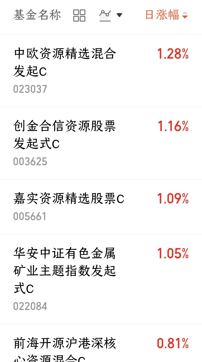 $嘉实资源精选股票C(OTCFUND|005661)$今日上涨1.09%