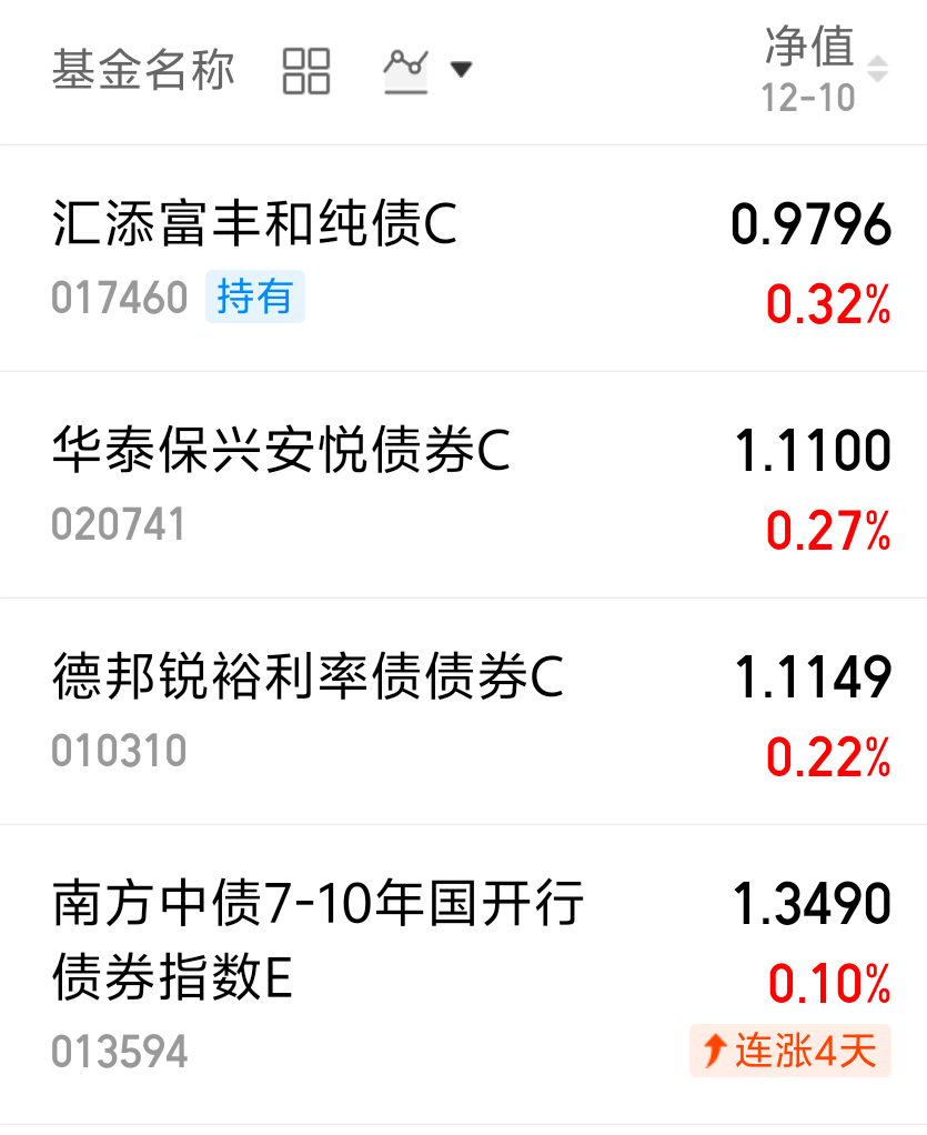 $南方中债7-10年国开行债券指数E(OTCFUND|013594)$今天收了10个蛋