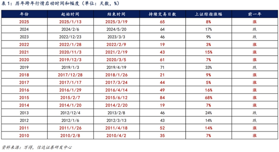 近期国内政策积极表态为市场构建支撑,且大盘已经进行较长时间的震荡,有望迎来跨年行情的布局窗口期。据信达证券统计,2010 年以来,每年年底到第二年春季的跨年阶段,大多会出现一段跨年行情。行情通常持续 1-2 个月,启动时间集中在 12 月-次年 1 月。从历史经验来看,如果指数处在低位,则跨年行情启动的时间较早,幅度较大,有正收益的概率较高。但如果指数处在高位,则跨年行情启动的时间往往较晚,幅度和收益不确定性也更大。