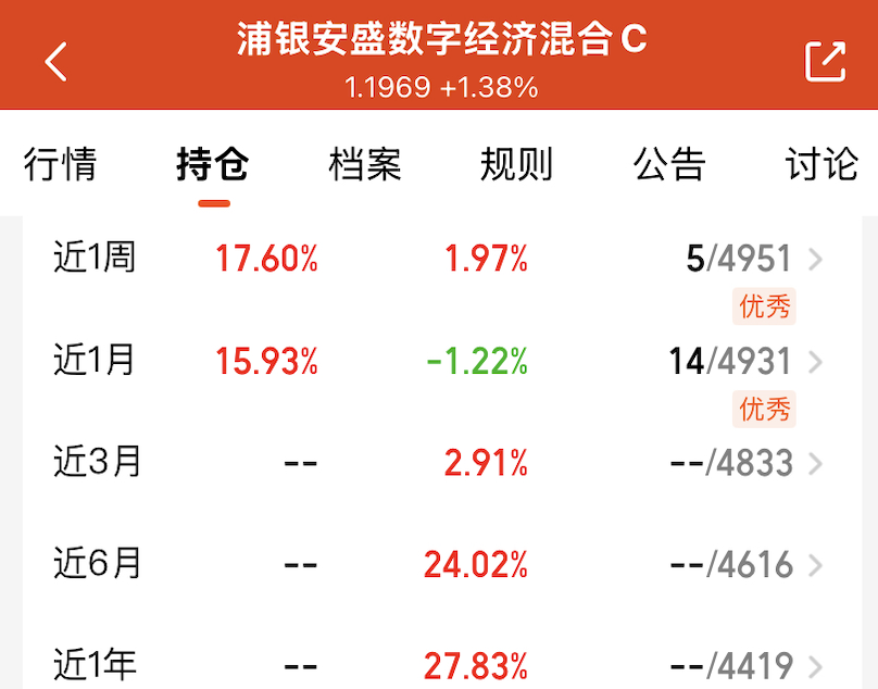 在这种产业与趋势双强的背景下,回调阶段往往是更好的布局区间。我最近选择建仓的浦银安盛数字经济混合C(025422),在这轮反弹中表现相当亮眼,已经成为 CPO 方向的“新晋黑马”。