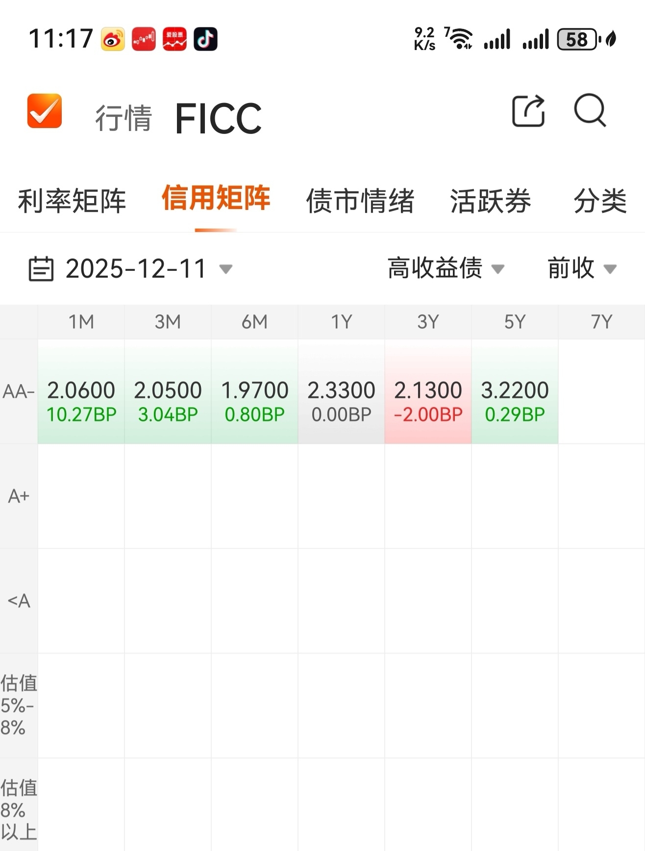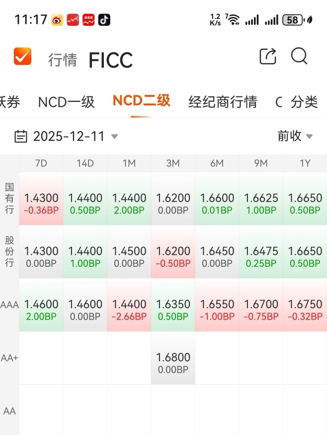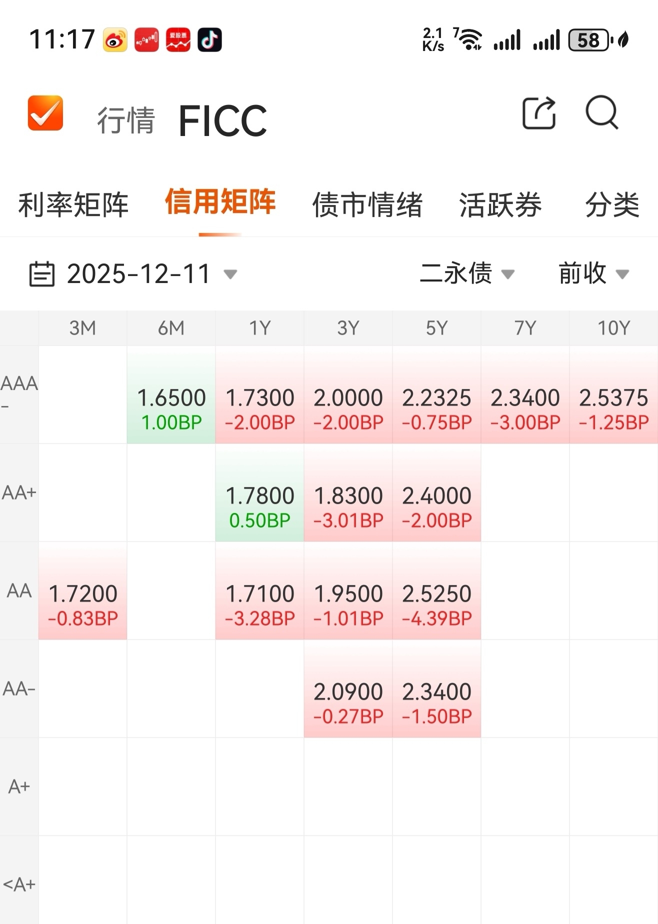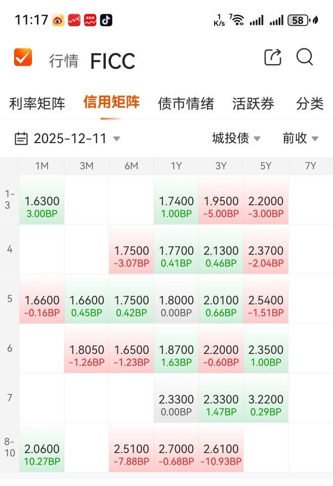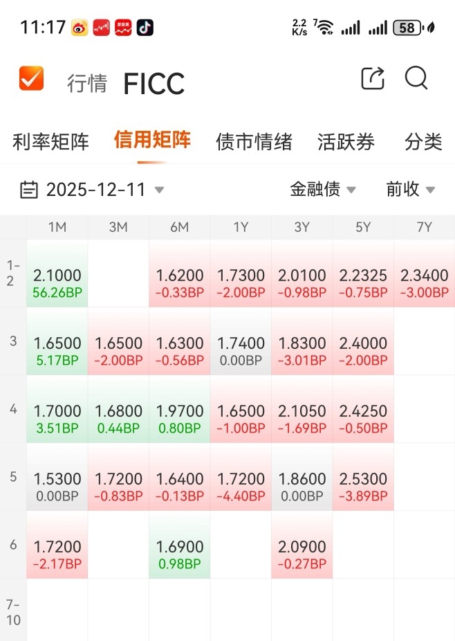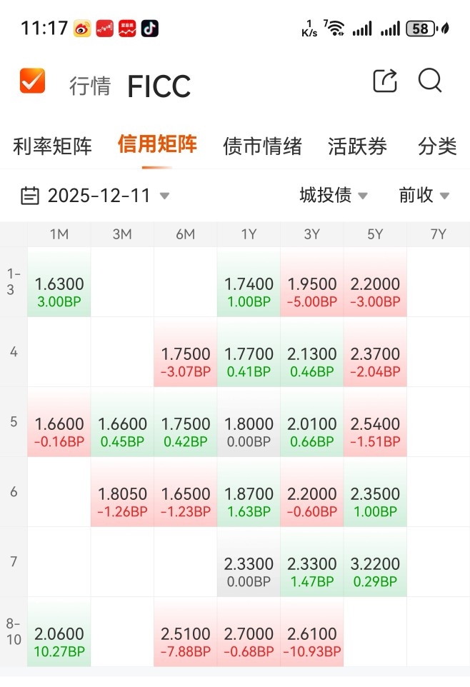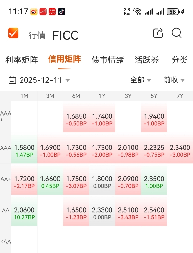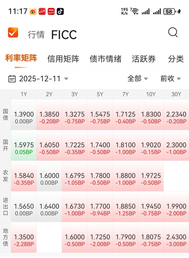在今天上午11点17分,观察今天债行情。红色,是涨。绿色,是跌。