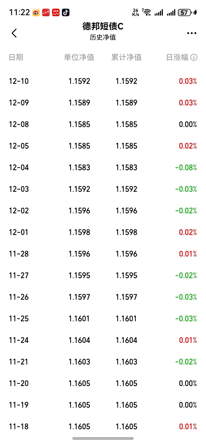 在最近这几天的时候,观察在以前买过部分短债债基在最近这些的历史净值收益涨跌表现数据详细。