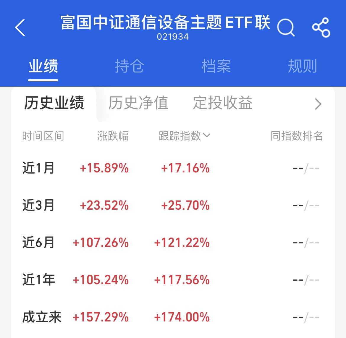 近期板块轮动上涨,但我发现总是有科技的细分领域,从机器人,电池,通信设备到Cpo,资金高低切换,板块轮动走强。今天继续加仓 $富国中证通信设备主题ETF发起式联接C$ 已经连续上涨5天,昨天上涨1.43%,持仓聚焦通信设备头企业,重点布局光模块,算力设备等等这些通信行业高景气赛道,业绩也证明了,中长期比较亮眼。其实从行业面看,光模块需求激增,上涨趋势也是明确的,今天继续埋伏加仓。