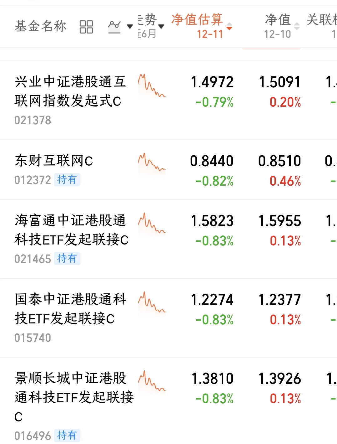 今天股市高开低走,不少板块调整了。港股目前位置不错,比较低,港股要涨,互联网指数龙头含量更高(阿里巴巴含量更高)的兴业中证港股通互联网指数发起式C弹性更大,修复起来更快,目前估值-0.79%,受大盘影响,被拉下来了,正好逢低加仓!而且一样的指数兴业费率低。
